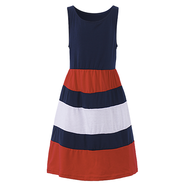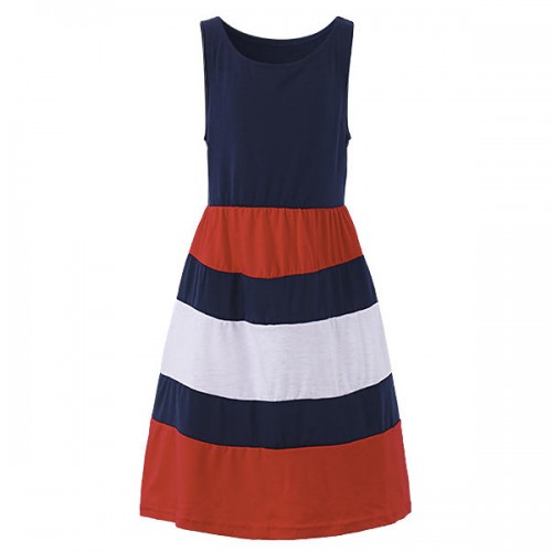 Summer Kid Girls Striped Patchwork Sleeveless Tank Maxi Dress