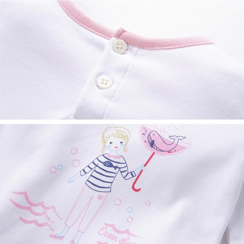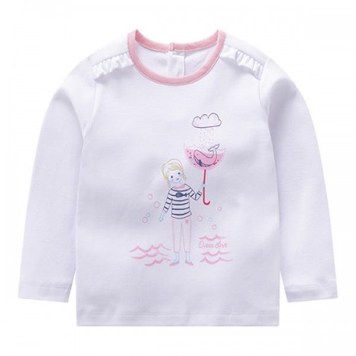 Kid Girls Long Sleeve Cartoon Character Cotton T-shirt