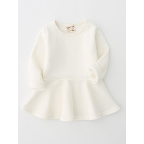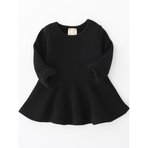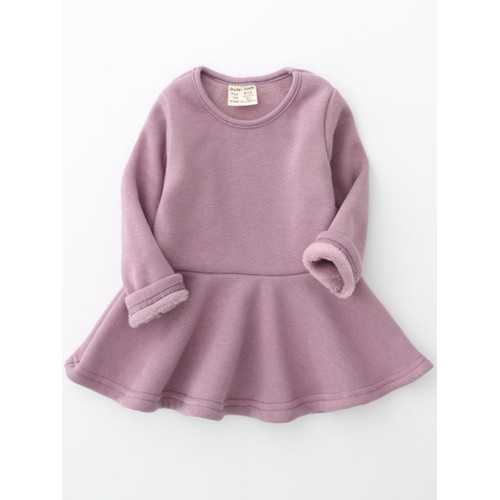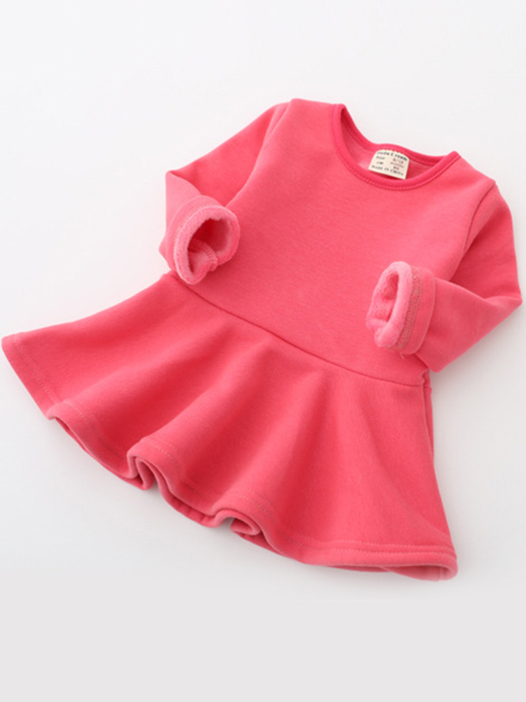 Girls Velvet Cotton Pure Color Lotus Leaf Edge Long Sleeve Kids Dress