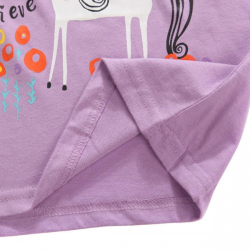 2015 New Little Maven Summer Baby Girl Children Horse Purple Cotton Short Sleeve T-shirt
