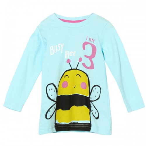 2015 New Little Maven Summer Baby Girl Children Bee Green Cotton Long Sleeve T-shirt