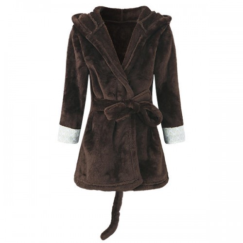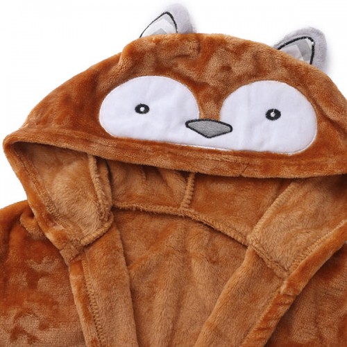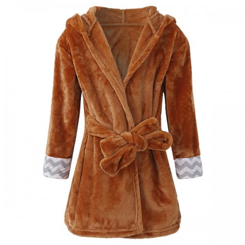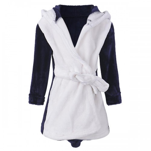 Kids Cartoon Pattern Bathrobe Long Sleeve Hooded Wrap Robe