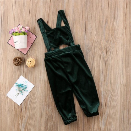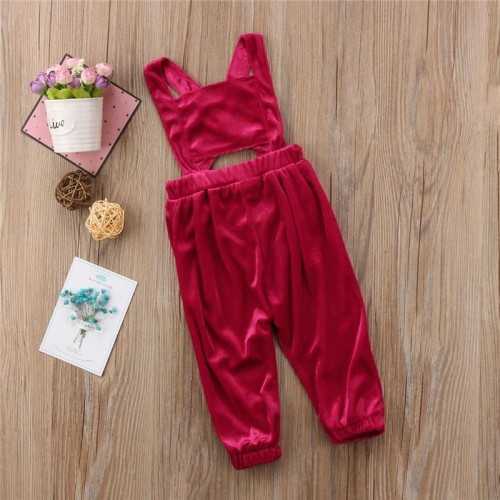 Girls Children Solid Color Back Cross Jumpsuit for 2Y-7Y