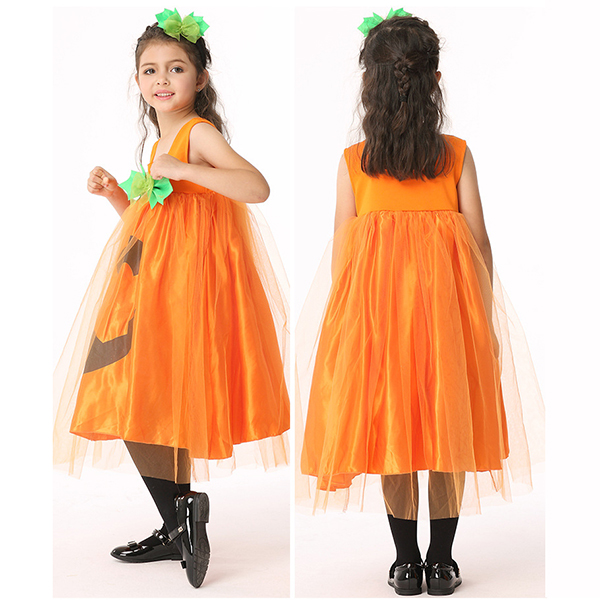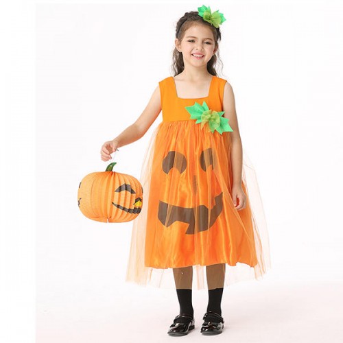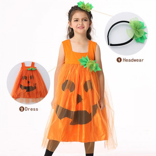 Halloween Kid Girls Pumpkin Fancy Dress Costume with Headwear