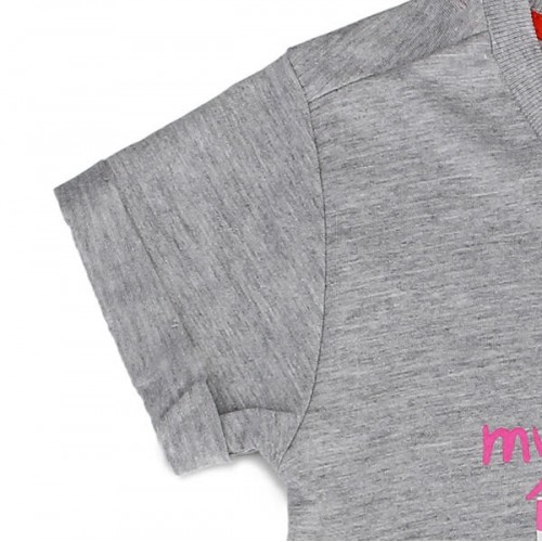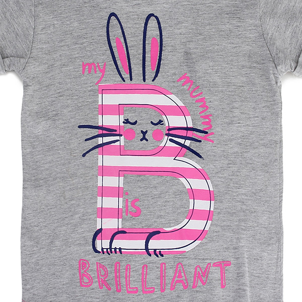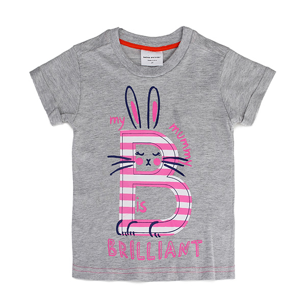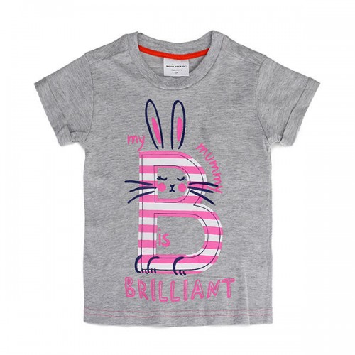2015 New Summer Baby Girl Children Rabbit Grey Cotton Short Sleeve T-shirt