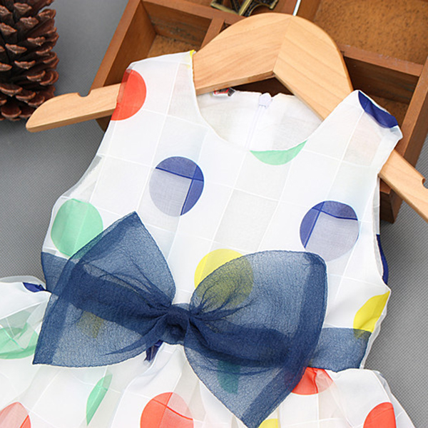 Sweet Kids Girls Big Bowknot Polka Dot Sleeveless Princess Dresses