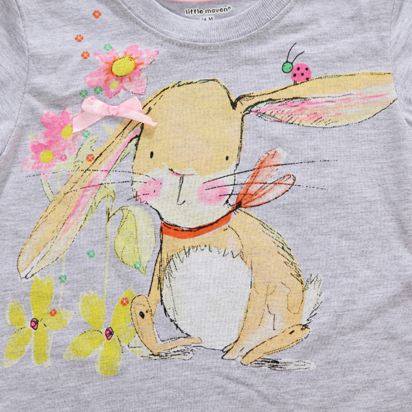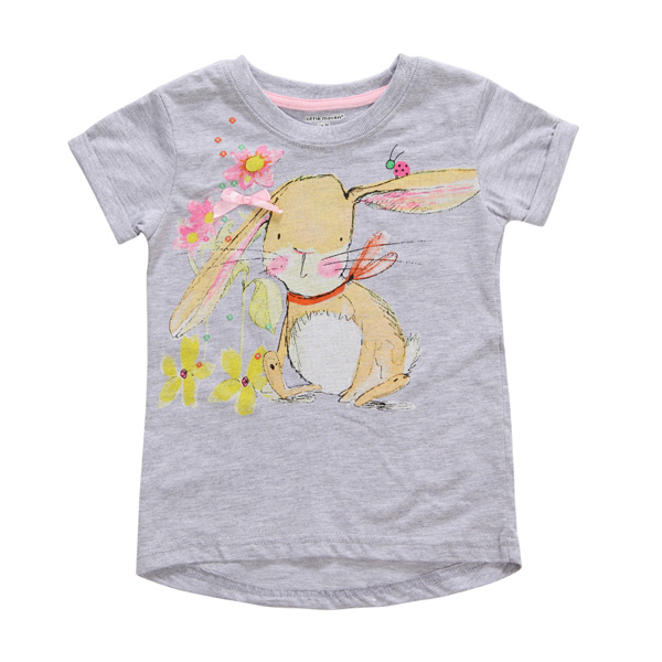 1 x Girl Cotton Cute Rabbit Grey T-shirt
