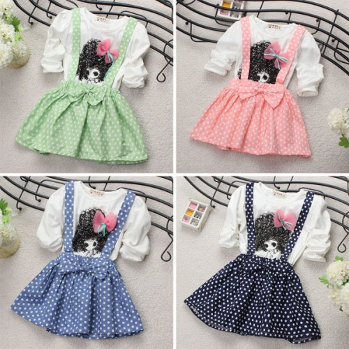New Baby Kids Girl Cotton Long Sleeve Polka Dots Party Princess Dress