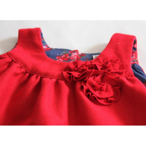 The Baby Children Girls Woolen Disk Flowers Vest Dress is made of wool, it is red.