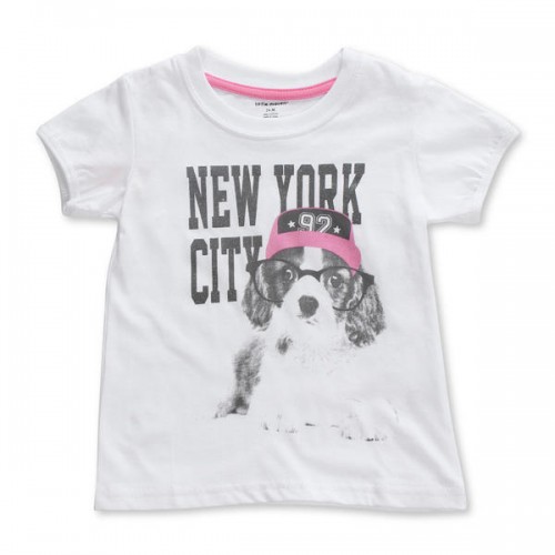 2015 New Little Maven Baby Children Girl Glasses Dog White Cotton Short Sleeve T-shirt Top