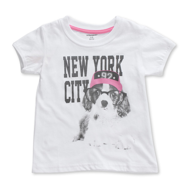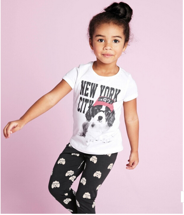 2015 New Little Maven Baby Girl Children Glasses Dog White Cotton Short Sleeve T-shirt Top