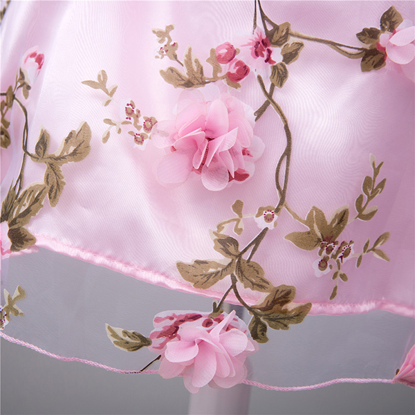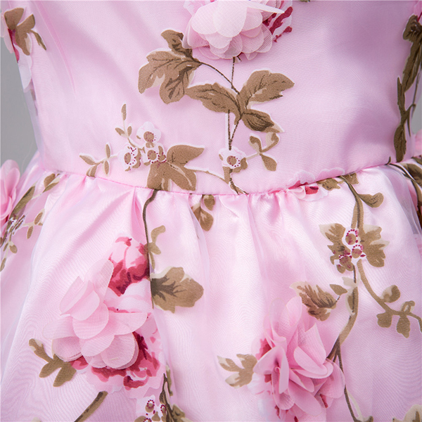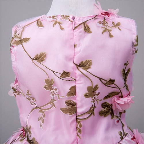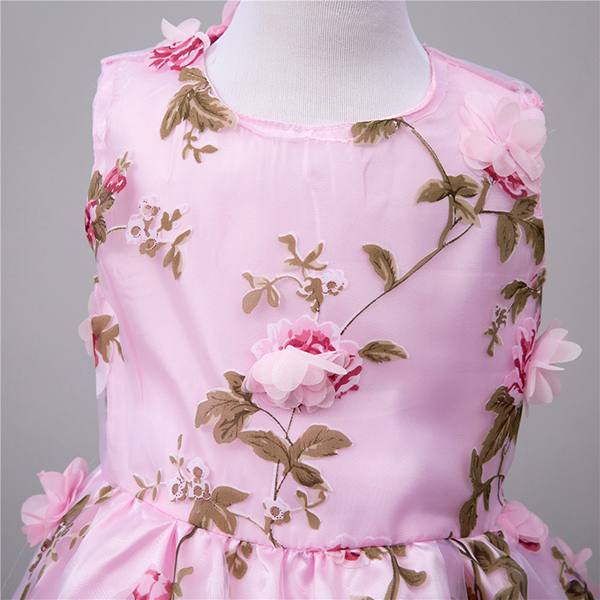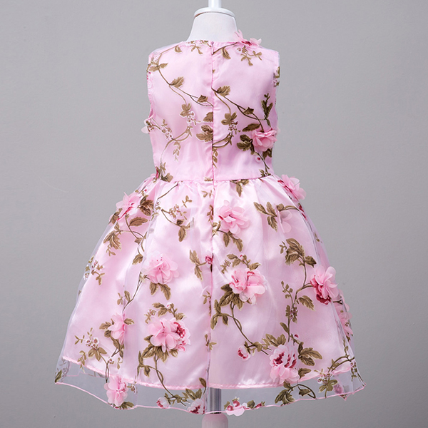 Pink Kids Girl Floral Sleeveless O-Neck Princess Party Dress