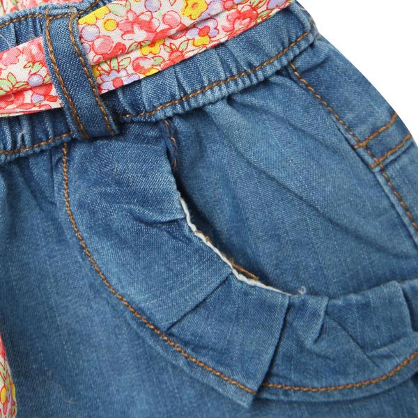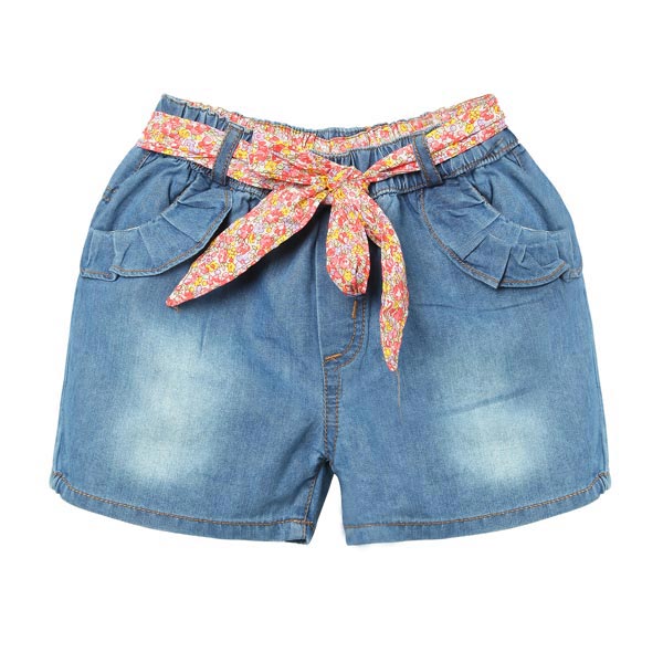 Girl Denim Shorts Children Jeans Pants With Flower Belt