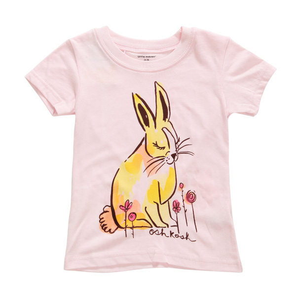 2015 New Little Maven Baby Girl Children Rabbit Light Pink Cotton Short Sleeve T-shirt Top
