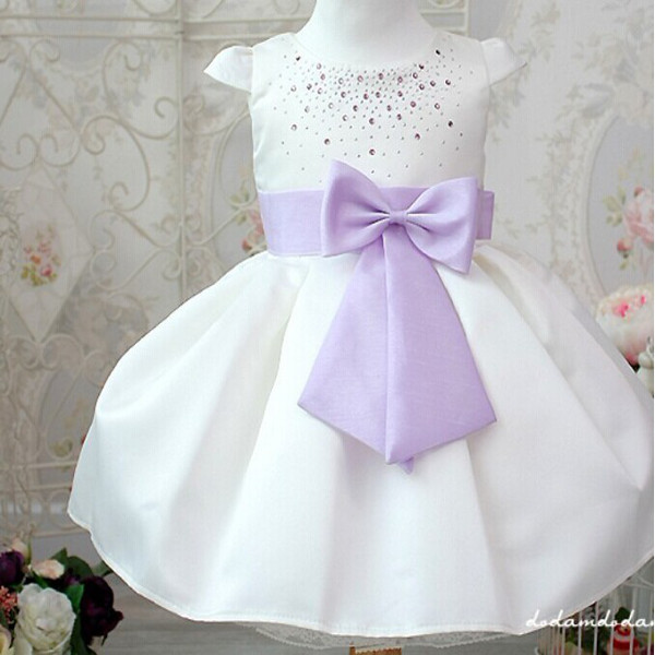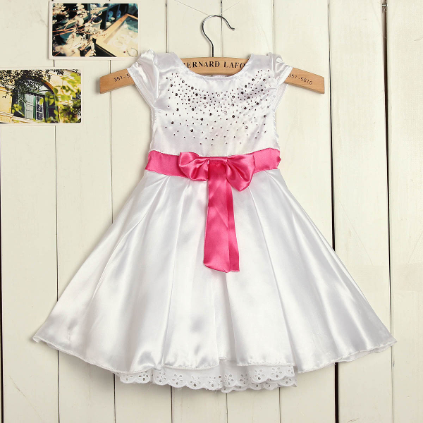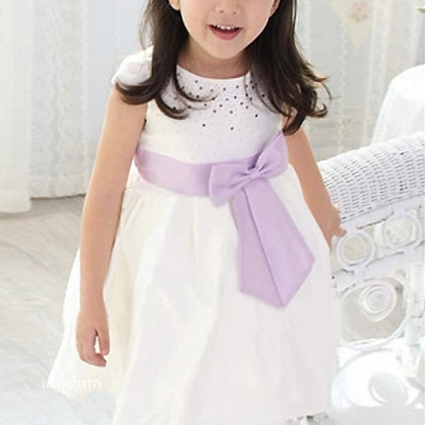 Girls Wedding Princess Bowknot Dress Tutu Bow-tie Short Sleeve Skirt