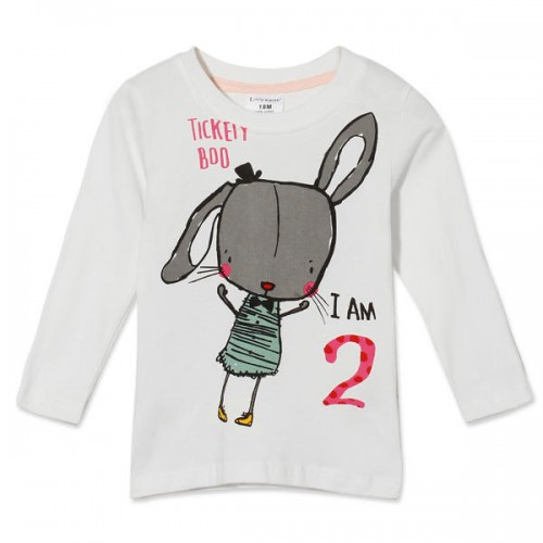 1 x Girl Cute Rabbit White Cotton T-shirt