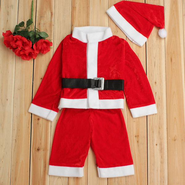 Children Christmas Girl Dress Boy Top+Pant+Hat Cap Party Clothes Sets