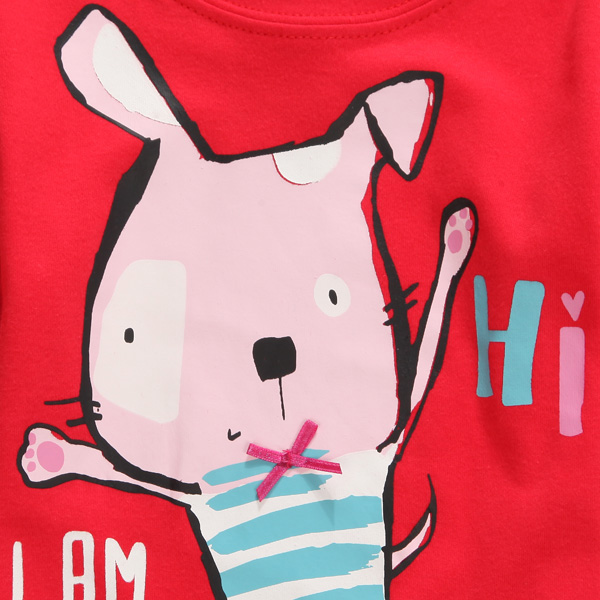 2015 New Little Maven Summer Baby Girl Children Rabbit Red Cotton Long Sleeve T-shirt