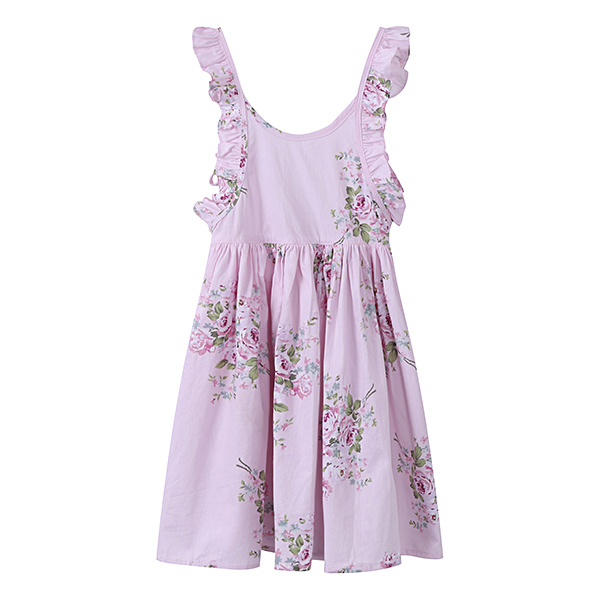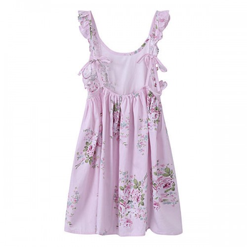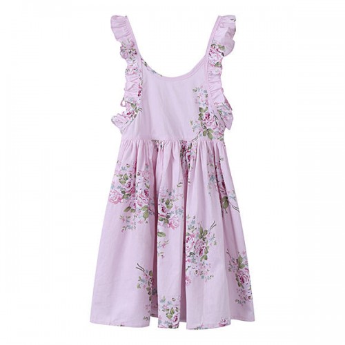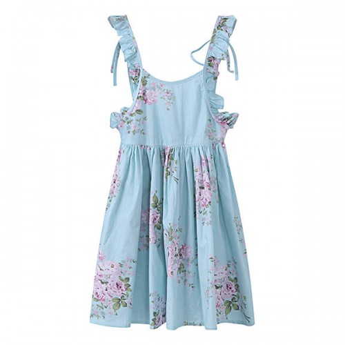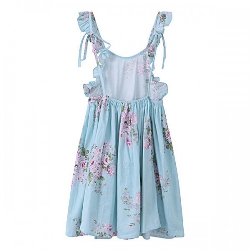 Kid Girls Cotton Vintage Floral Printed Sleeveless Backless Princess Dress