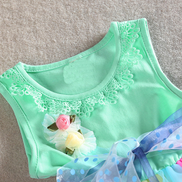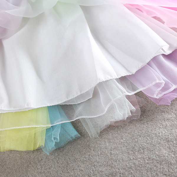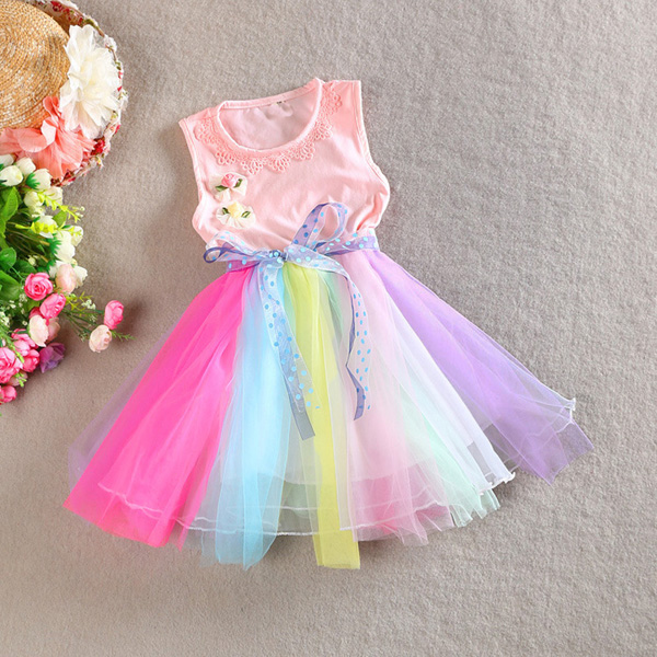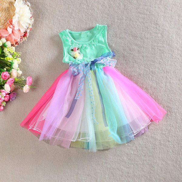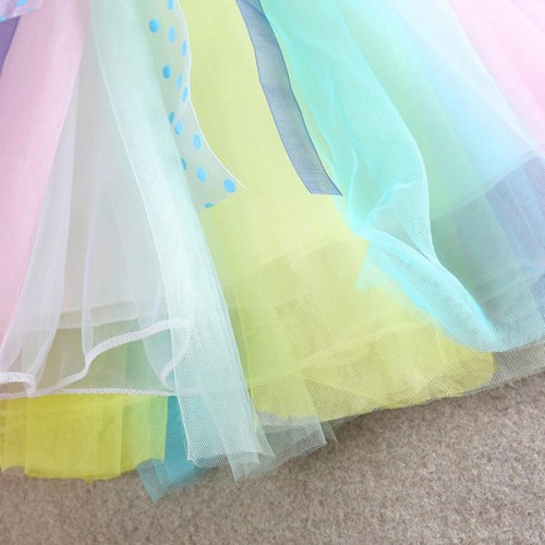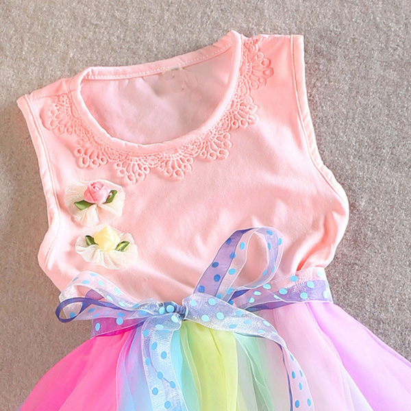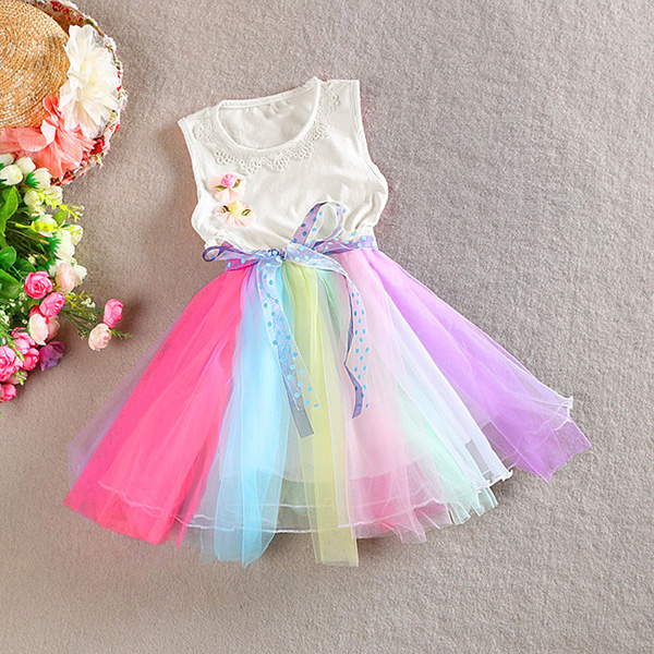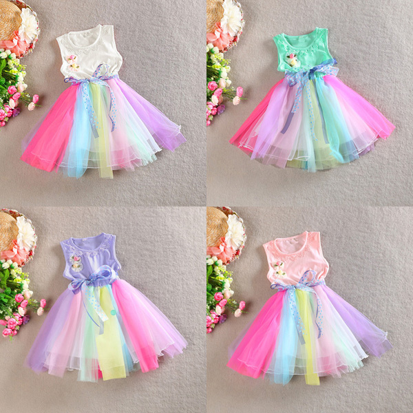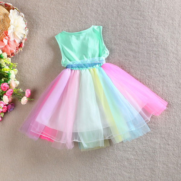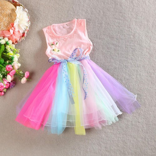 2015 Toddler Kids Girls Rainbow Sleeveless Princess Party Gauze Skirt Tutu Dress
