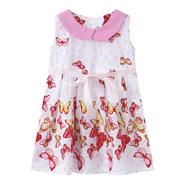 Kid Girls Doll Collar Butterfly Printed Sleeveless Dress