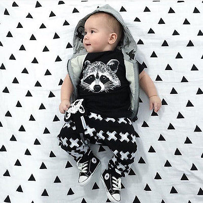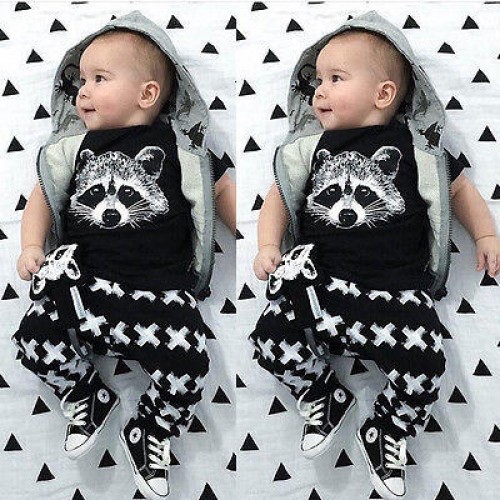 2Pcs New Toddler Baby Boys Fox T-shirts Long Pants Leggings Outfits Clothing Set Costume