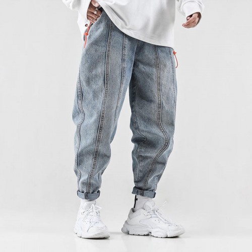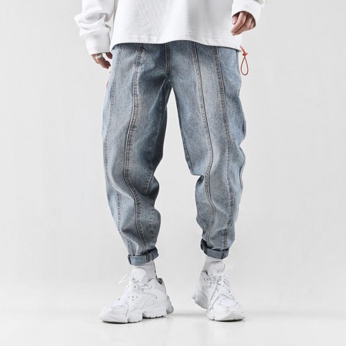 Description: Item Type: Pants Length: Full Length Gender: Men Fit Type: Slim Material: Denim Closure Type: Zipper Fly Style: Casual Thickness: Standard Waist Type: Mid Rise Season: Spring, Summer, Autumn, Winter Pants Type: Harem Pants Occasion: Leisure