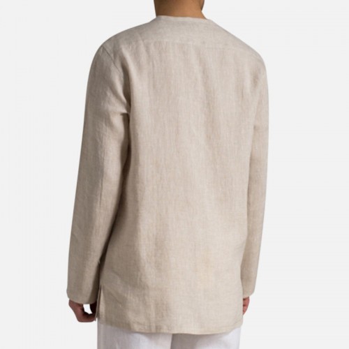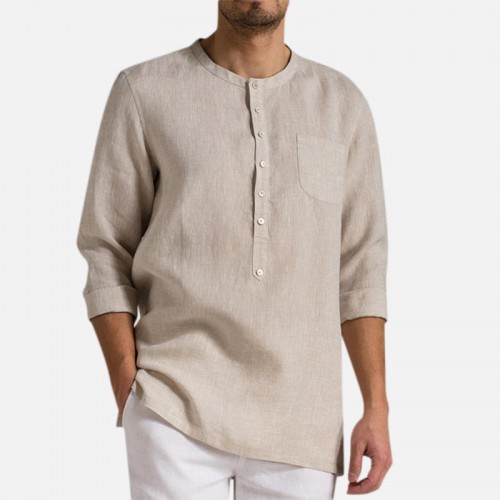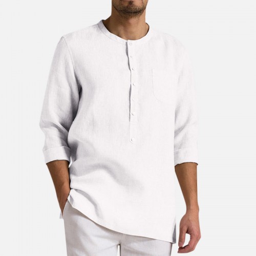 Mens Vintage Stand Collar Solid Color Half Sleeve loose Fit Casual T-shirts
