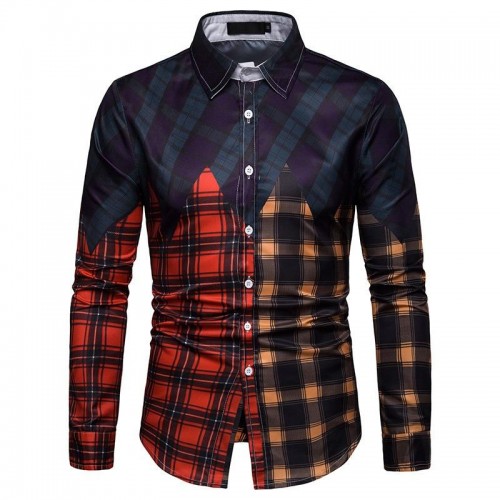 Description: Item Type: Shirts Sleeve Length: Long Sleeve Gender: Men Pattern Type: Plaid, Color Block Style: Casual, Fashion, Novelty Fit Type: Fit Collar: Turn-down Collar Thickness: Regular Material: Polyester, Cotton Season: Spring, Autumn, Winter Cuff Type: Shirt Sleeves Occasion: Leisure, Work, Homedress