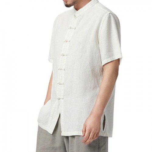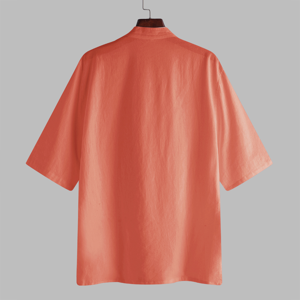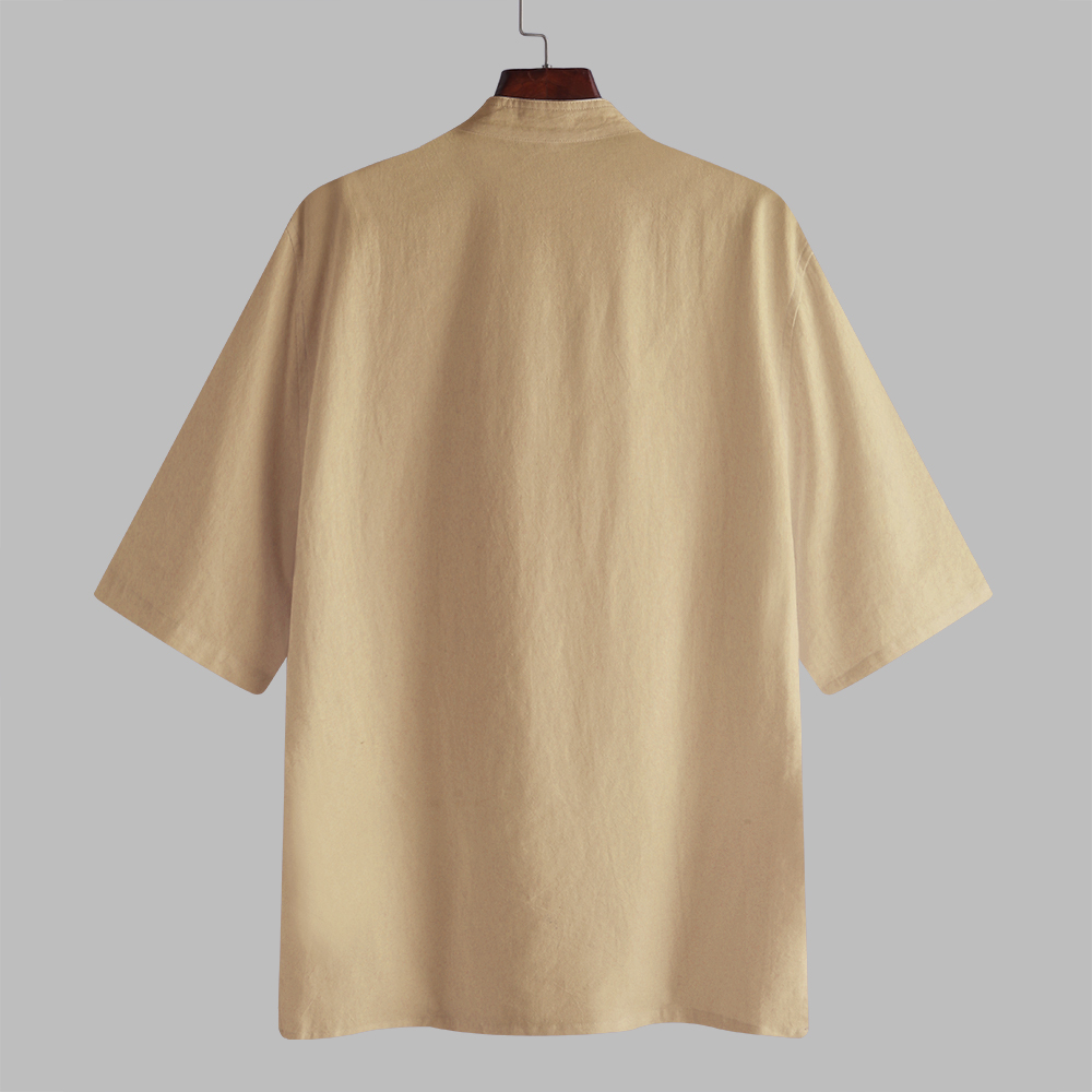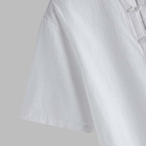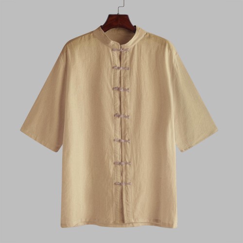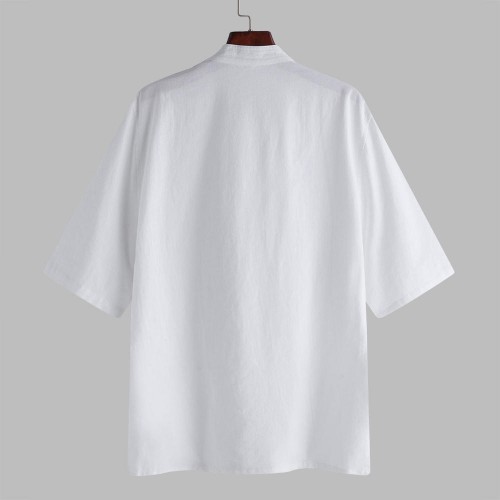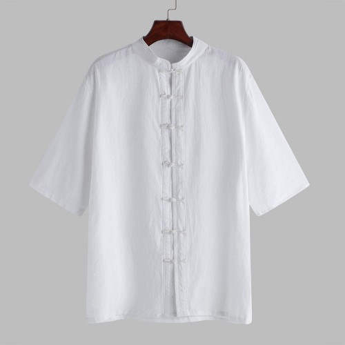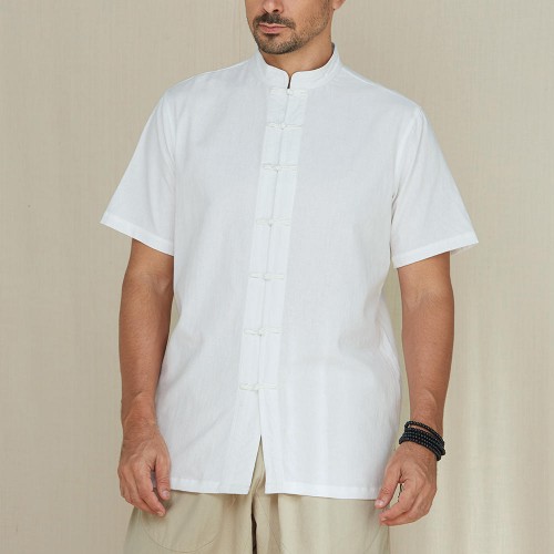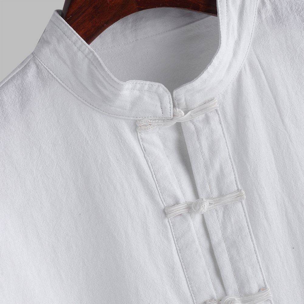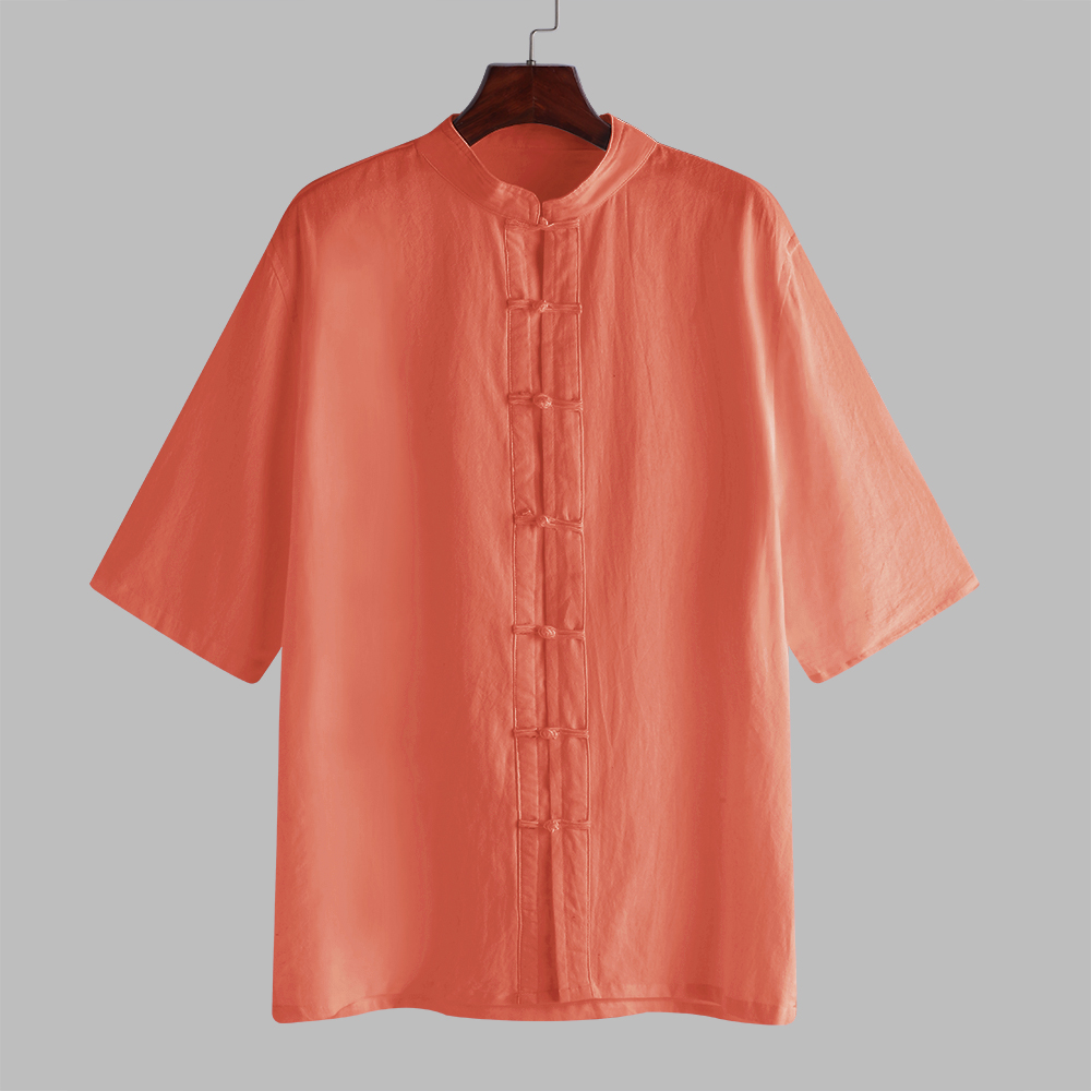 TWO-SIDED Mens Plus Size Casual Pure Color Chinese Style Frog Buttons Cotton Shirts