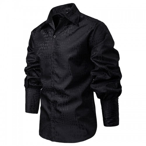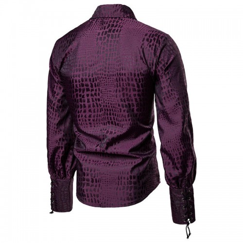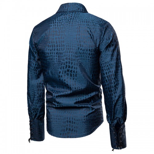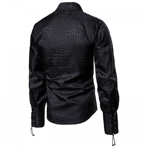 Men Irregular Pattern Lace Cuff Long Sleeve Shirts