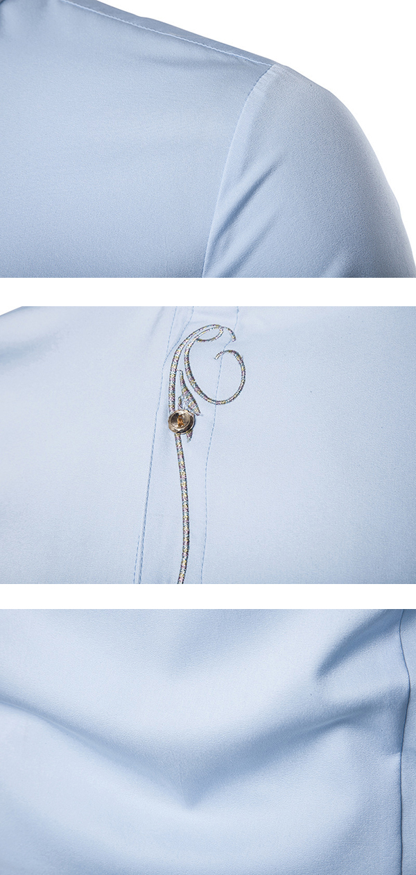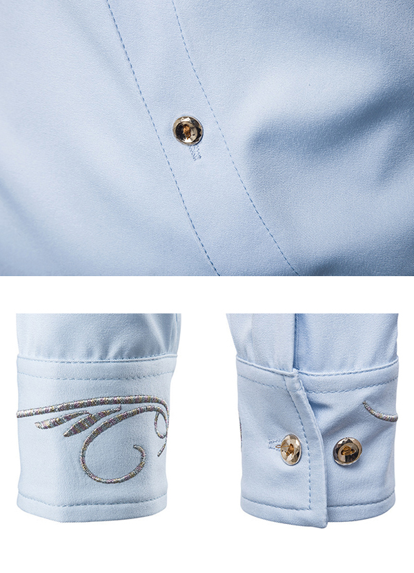 Mens Embroidery Personality Slant Blanket Irregular Hem long Sleeve Fashion Casual Shirts