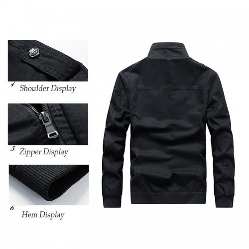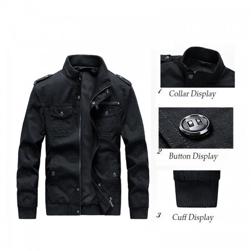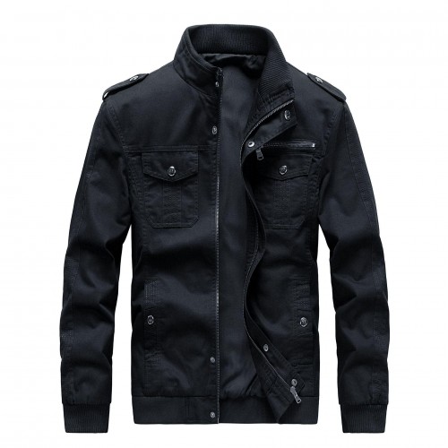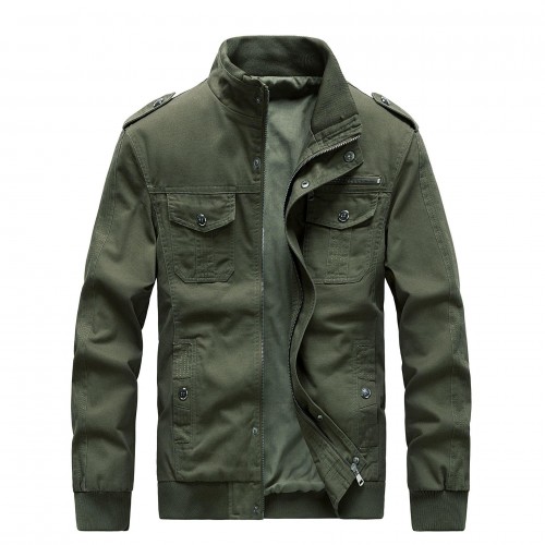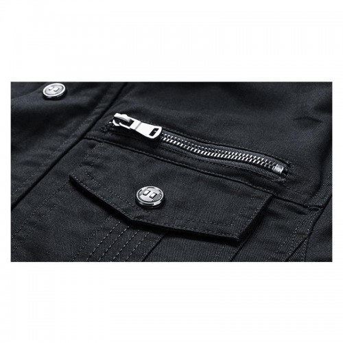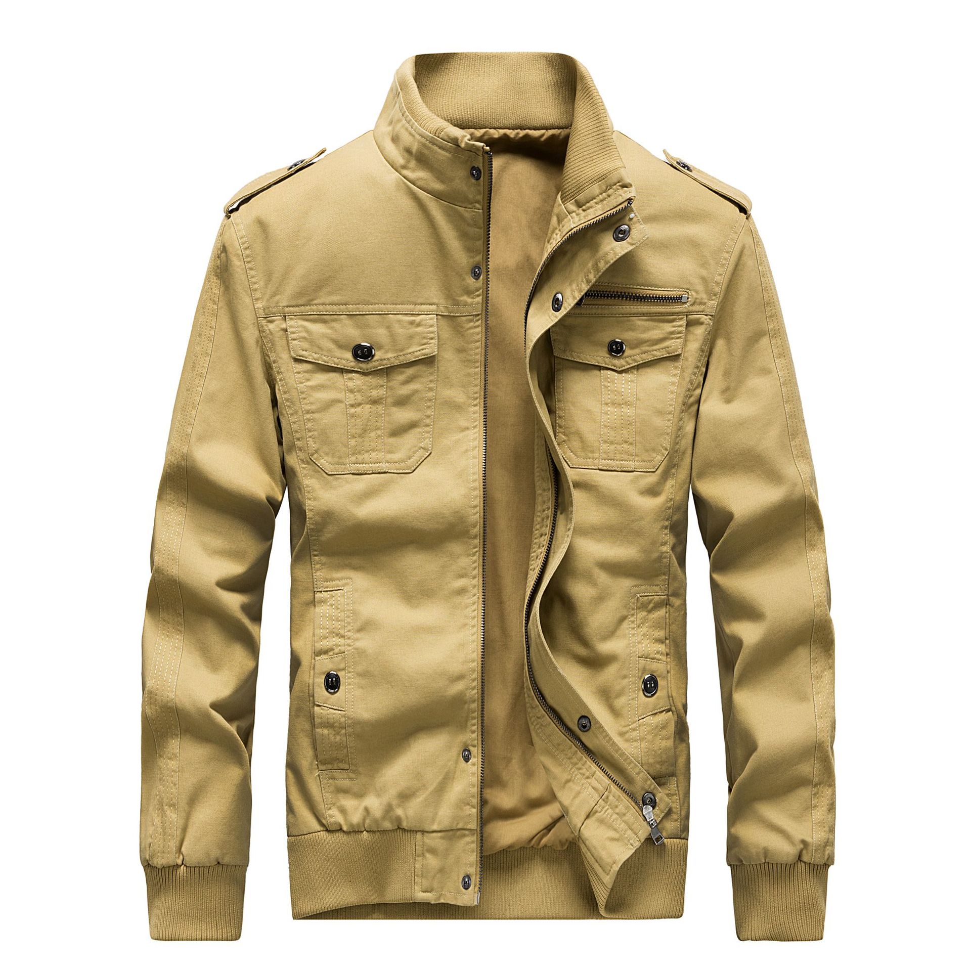 Mens Cotton Outdoor Casual Stand Collar Multi-pocket Autumn Jacket