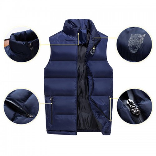 Mens Big Size Stand Collar Thick Warm Down Cotton Padded Casual Vest Coat