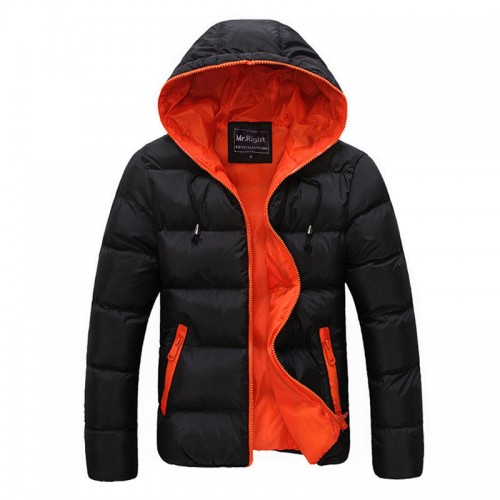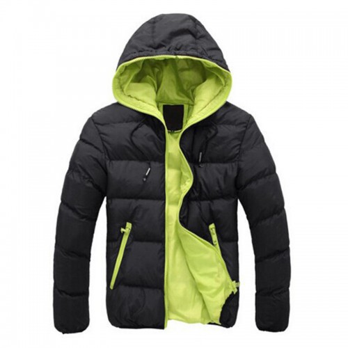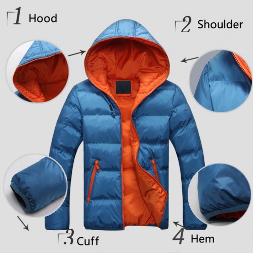 Mens Winter Thermal Contrast Color Outdoor Warm Hooded Padded Jacket