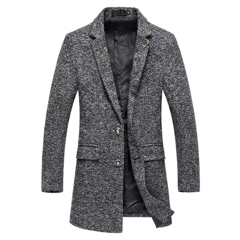 Description: Item Type: Trench Sleeve Length: Long Sleeve Gender: Men Clothing Length: Mid-long Style: Casual Thickness: Regular Material: Cotton, Wool Fit Type: Fit Lining Material: Polyester Pattern Type: Solid Color Hooded: No Season: Spring, Autumn, Winter Closure Type: Single Breasted Color: Gray, Wine Red