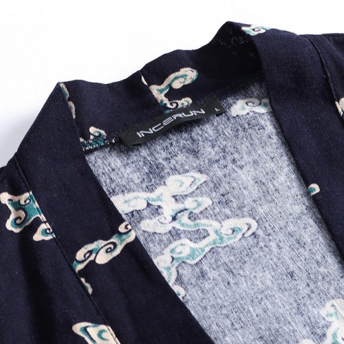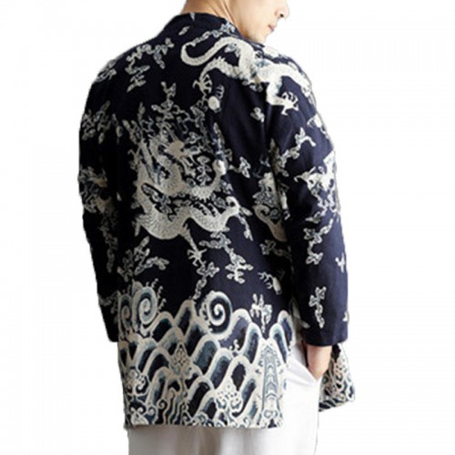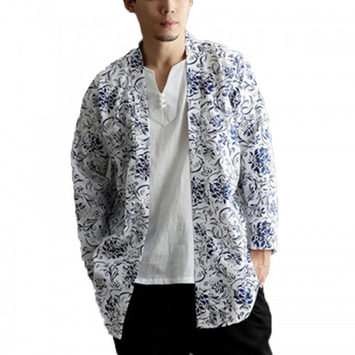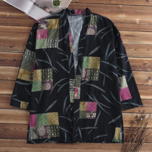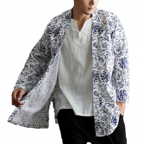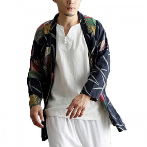 Mens Casual National Linen Kimono Cardigans Coat Streetwear Open Loose Jacket