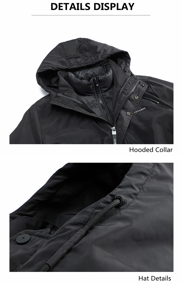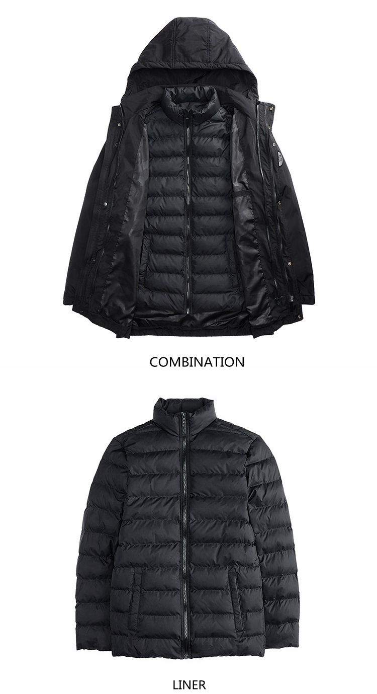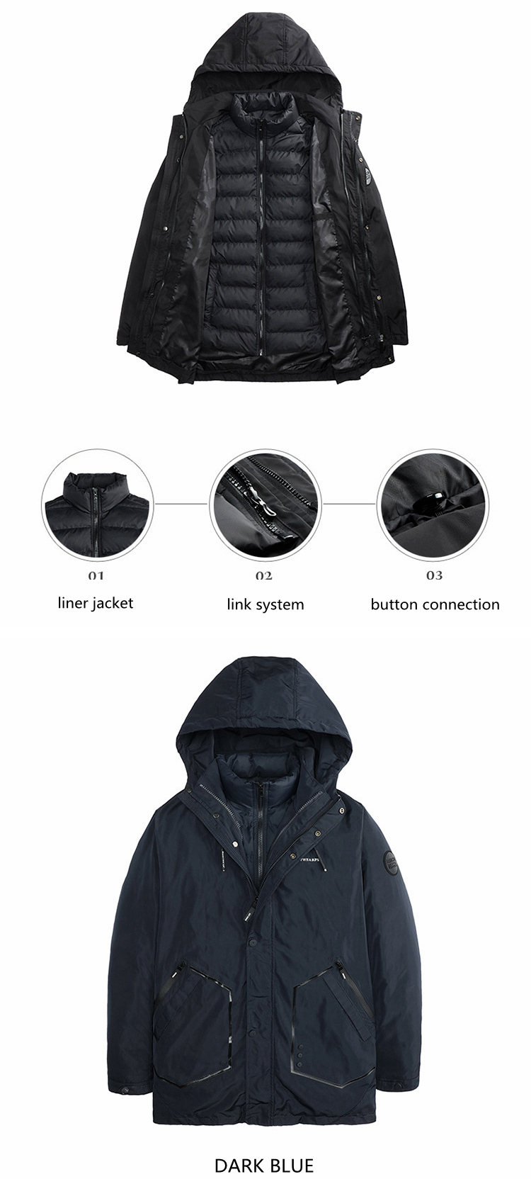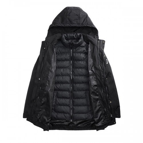 Winter 2 in 1 Thick Warm Padded Jacket Zipper Button Hooded Fashion Casual Men Two-piece Parkas