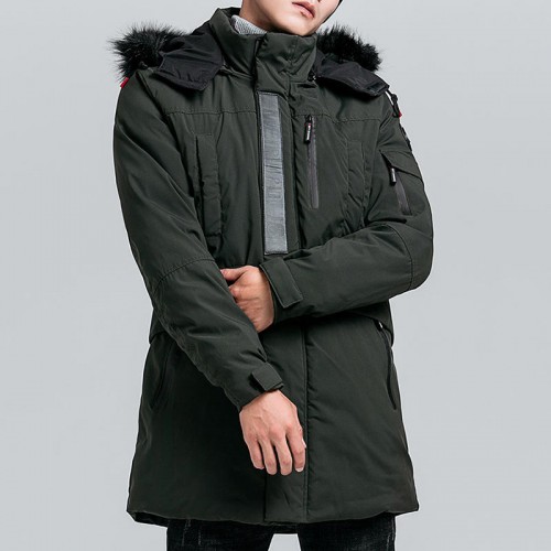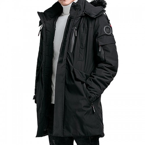 Mens Winter Mid Long Cotton Padded Hooded Thick Warm Jacket Casual Parka