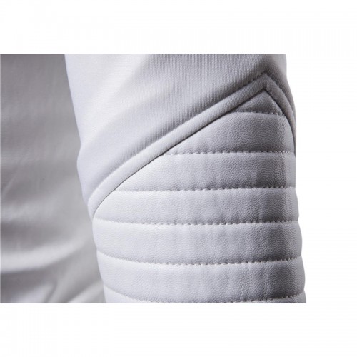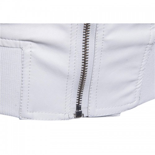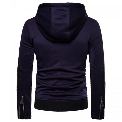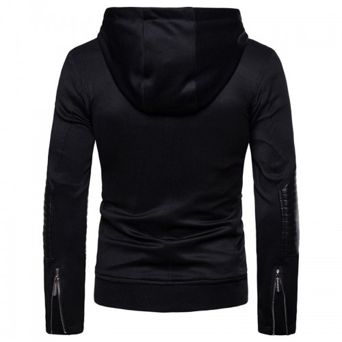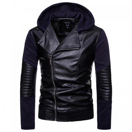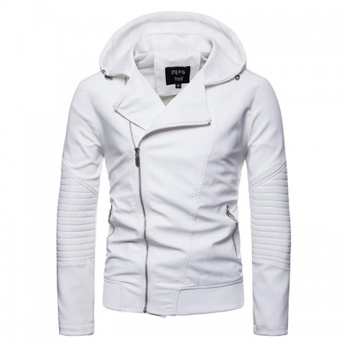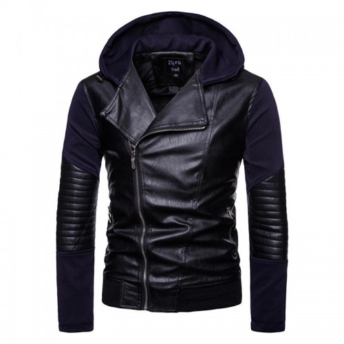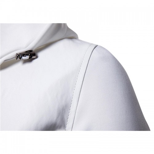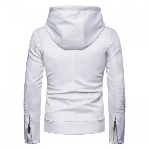 Men Zipper Hooded Pocket Decoration Leather Jacket