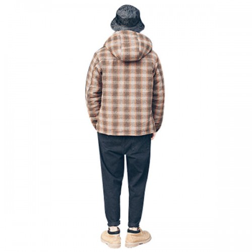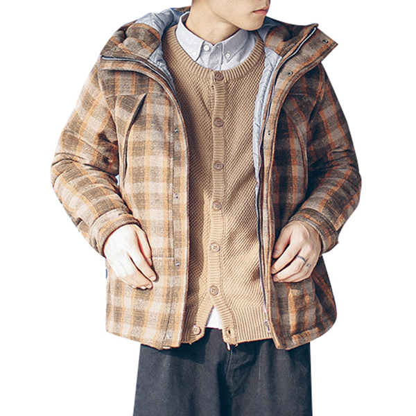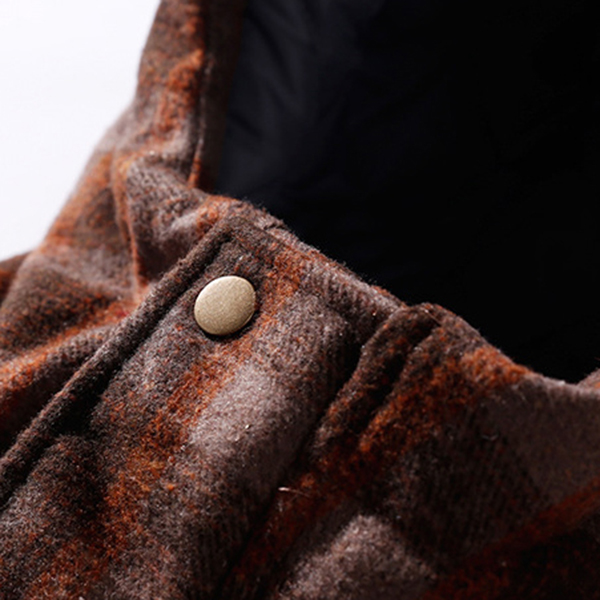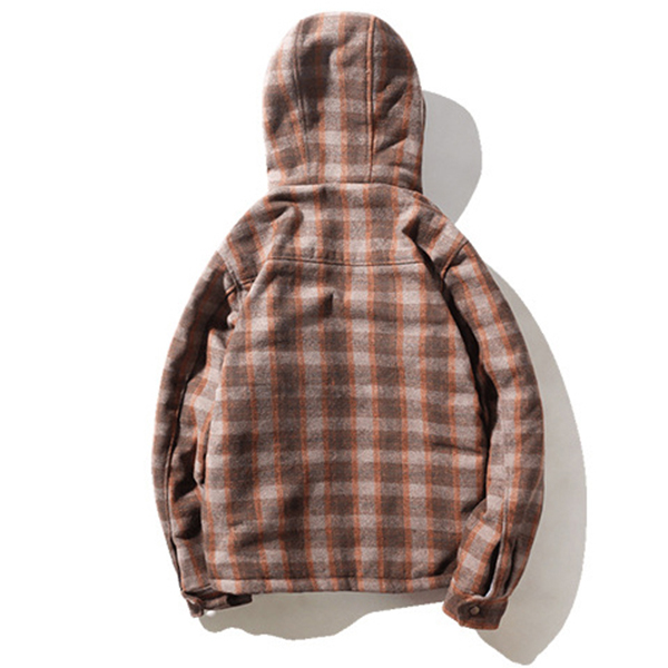 Mens Plaid Checkered Thick Warm Hooded Winter Fashion Jackets