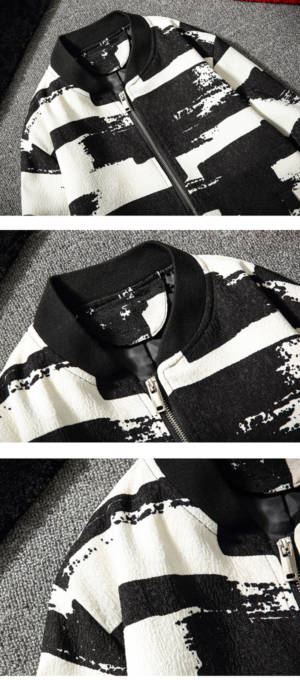 Mens Black White Baseball Jacket Fashion Casual Sport Slim Fit Spring Coat