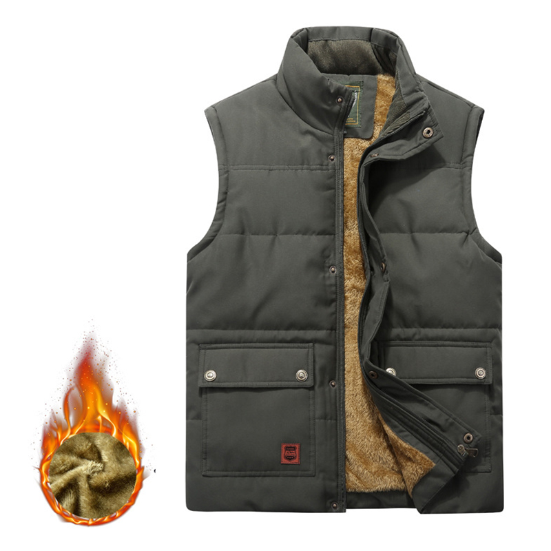 Mens Outdoor Water Repellent Thick Fleece Multi Function Pockets Solid Color Vest