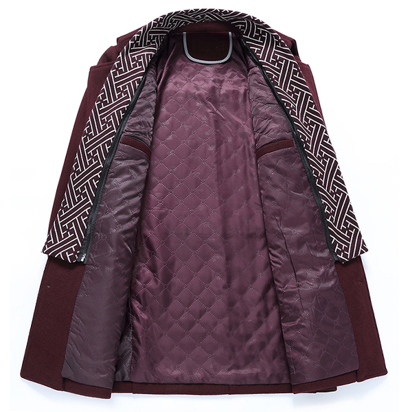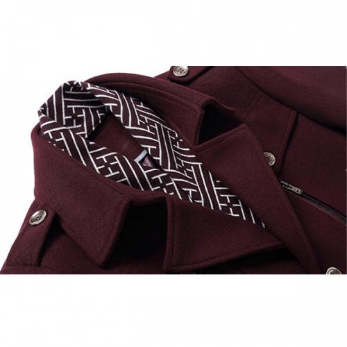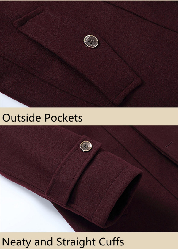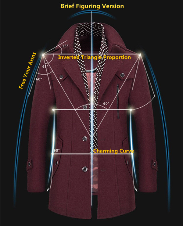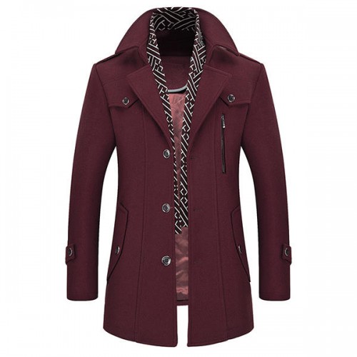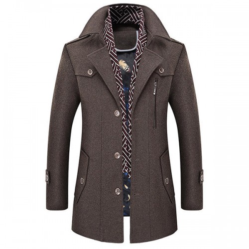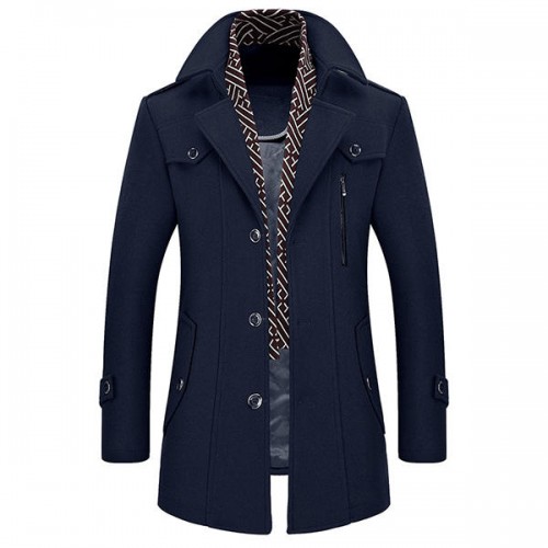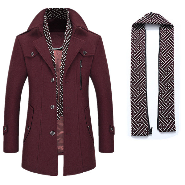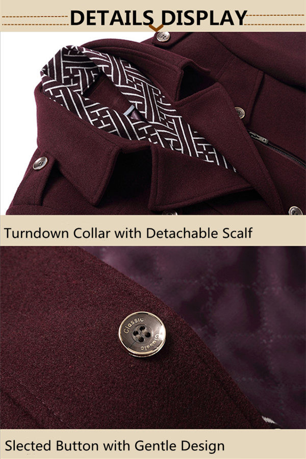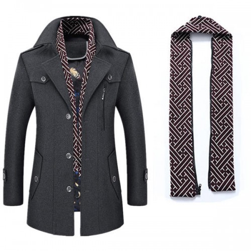 Men's Thick Wool Detachable Scarf Trench Coat Casual Business Pea Coat Top Coats