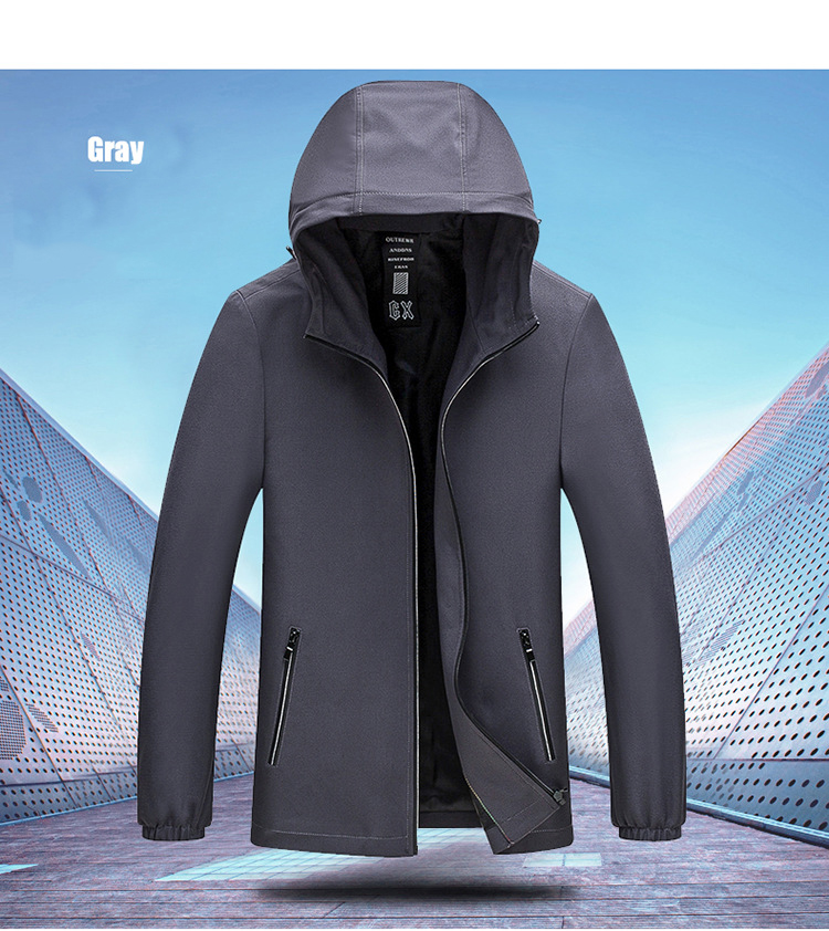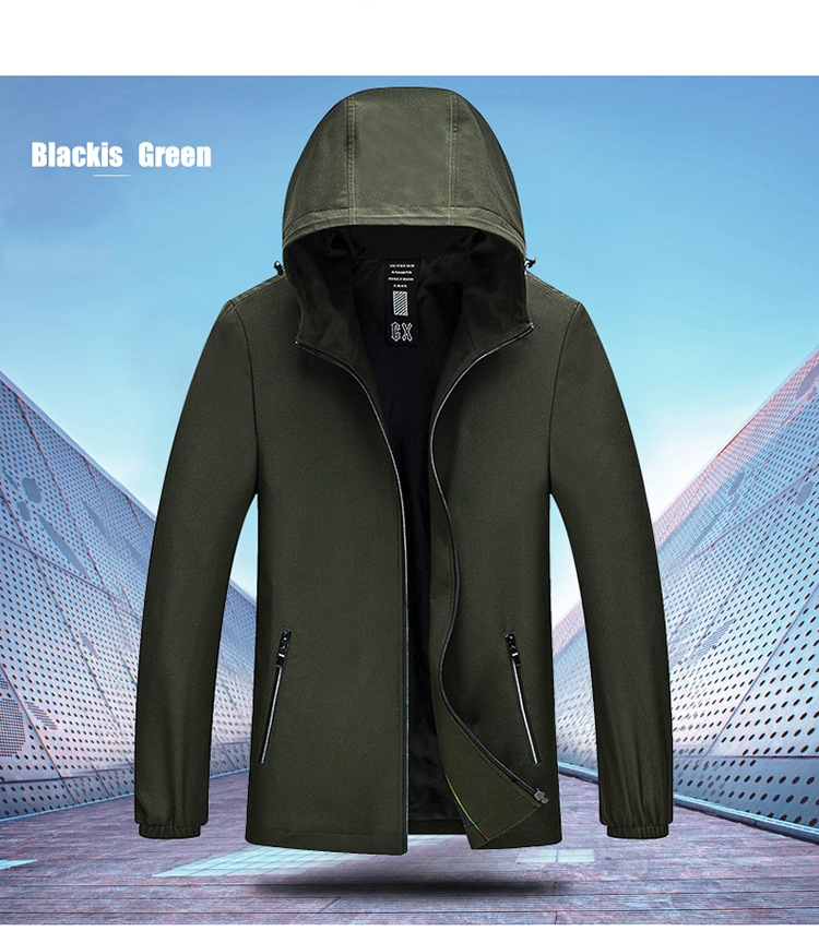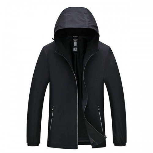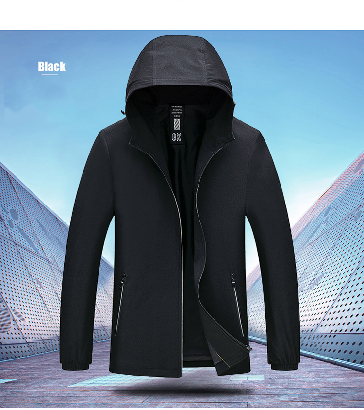 Pure Color Zipper Hooded Spring Autumn Casual Jacket for Men