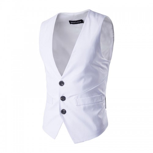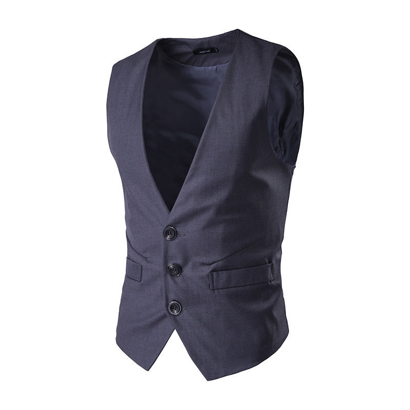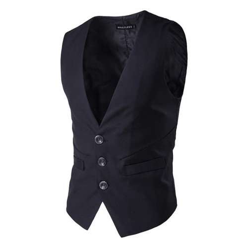 Mens Three Buttons Business Slim Fit Solid Color Casual Vest