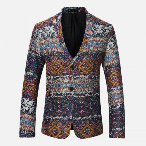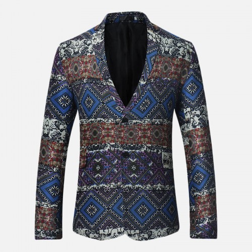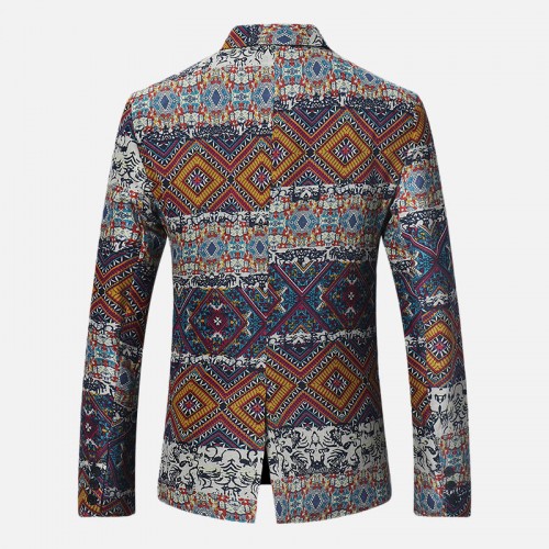 Mens Ethnic Style Printing Suit Jacket Blazers