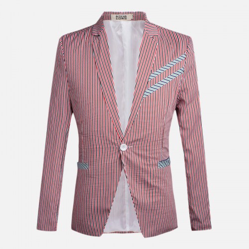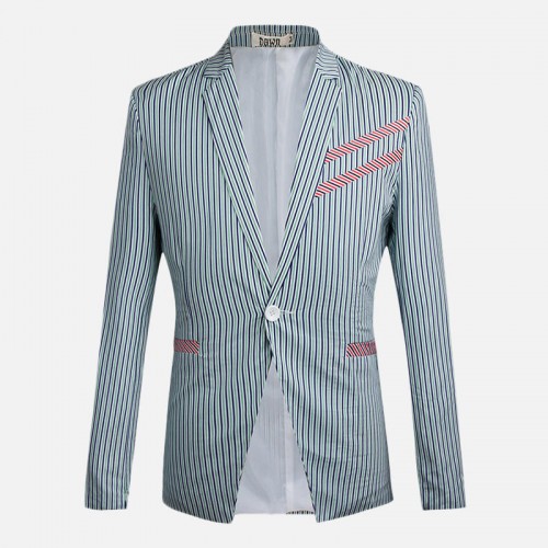 Mens Fashion Slim Stripe Suit Jacket Blazers
