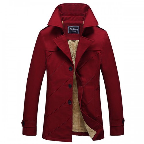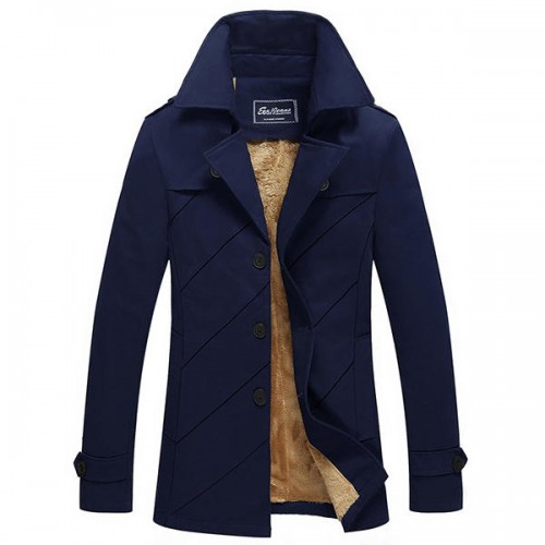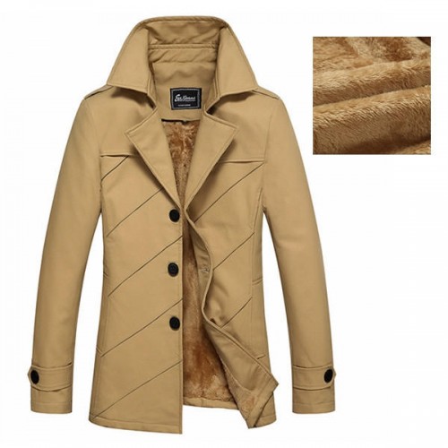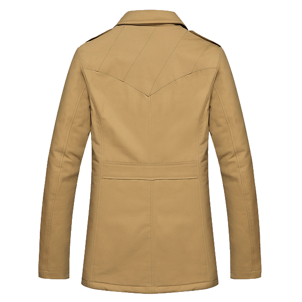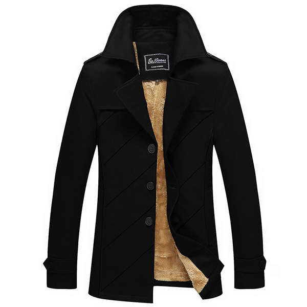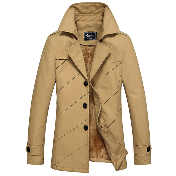 Winter Mens Mid Long Cotton Stylish Jacket Plus Velvet Thick Solid Color Single Breasted Coat