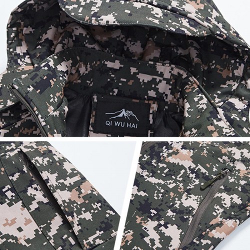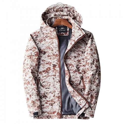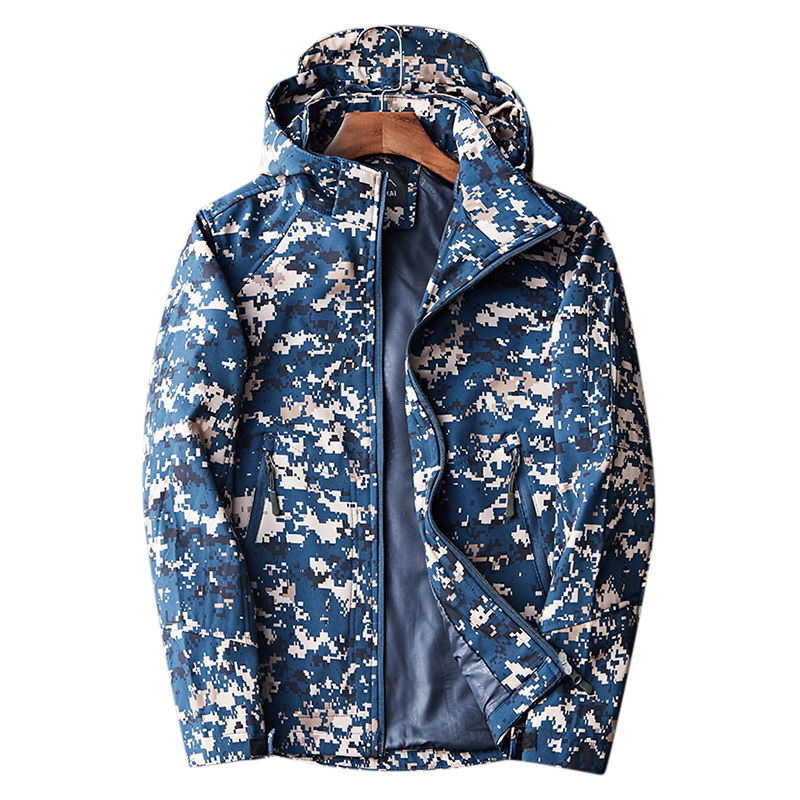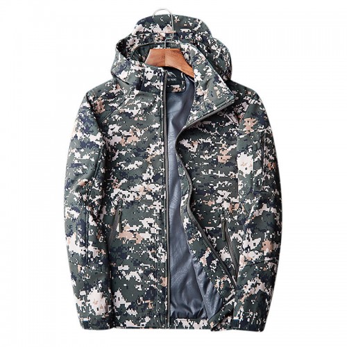 Mens Camo Printing Windproof Breathable Casual Hooded Outdoor Sports Jacket